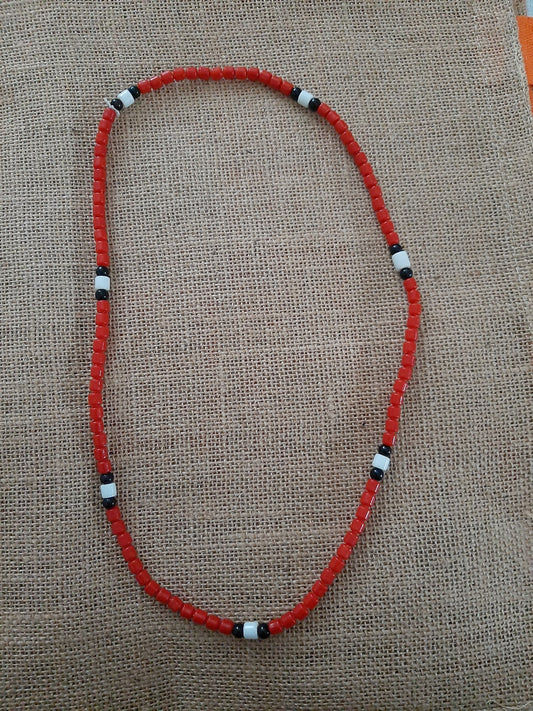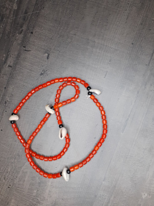 Collier de perles ou baya/binbin couleur rouge avec cauris