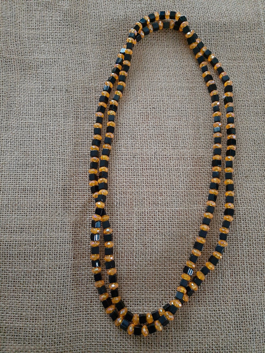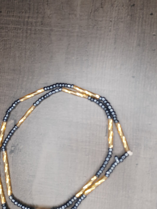 Collier de perles de verre recyclés couleur noire et or